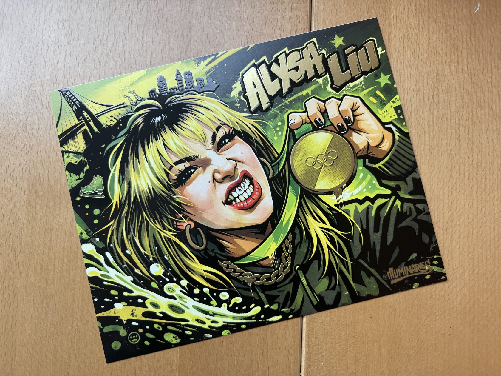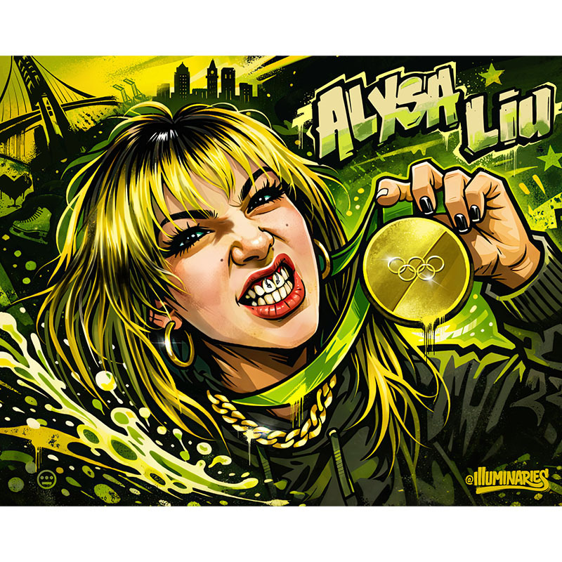 Alysa Liu doing the thizz face illustrated by Illuminaries